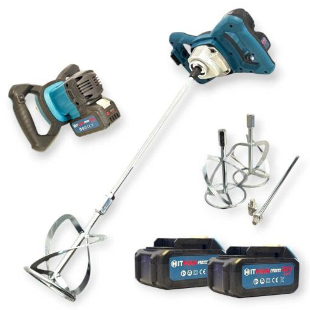 Mixer de vopsea fara fir Hitman 62V- 2x8.0 Ah tija dubla de amestecare